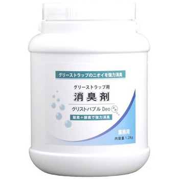 粉末タイプのグリーストラップ用消臭剤。酸素の泡と特殊酵素のWパワーでグリストラップから発生するいやな悪臭に対して高い消臭効果を発揮します。従来のように塩素や苛性ソーダなどきつい薬剤は使わず、安全に作業ができます。非劇物で環境や排水管にやさしい。グリストラップ100Lに対し、1ボトル約12回使用できるため、大変経済的です。【使い方】粉末を水もしくはぬるま湯に溶かしてグリストラップもしくはグリストラップに一番近い排水口から投入します。臭いが消えた後は、メンテナンスとして週に1~2回、または必要に応じてご使用ください。成分:過炭酸ナトリウム、酵素(※油脂分解酵素、タンパク質分解酵素、でんぷん質分解酵素の3種類)。