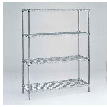 耐錆、耐薬品性に優れ衛生管理が重要視される環境に最適。高温多湿、冷凍・冷蔵など過酷な条件下でも抜群の耐久性。耐荷重150kg/棚1段。ポールはSUS304(18-8)ステンレス製。