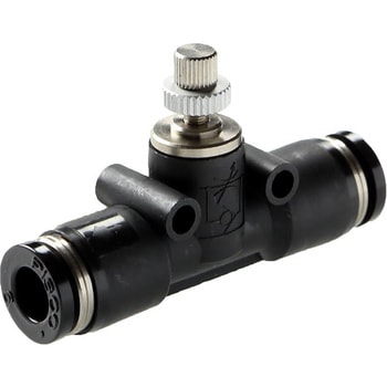 アクチュエータの遠隔、集中制御に便利なインライン形でメータイン・メータアウト一体形のスピードコントローラです。給気と排気両方向の流量制御が可能です。回路状況により、アクチュエータの飛び出し防止や速度安定化、単動シリンダの往復速度制御などが可能です。取付部が360°回転するため、底面、側面、パネルマウント等、取付・設置方式が自在に選択可能です。取付用ブラケットが不要です。小形ながら最大流量が大きく、シリンダサイズ、速度制御の選択範囲を充実しました。エアファイバ仕様です。低速・微速域の速度制御や小口径シリンダの速度制御がとても容易です。チェックパッキンには耐オゾン材料、樹脂部には難燃性(UL94規格V-O相当)を標準採用しています。