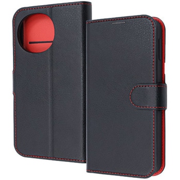 AQUOS R9 pro Like standard 耐衝撃 マグネットベルト シンプル 手帳型レザーケース / ブラック_レッドレイ・アウト