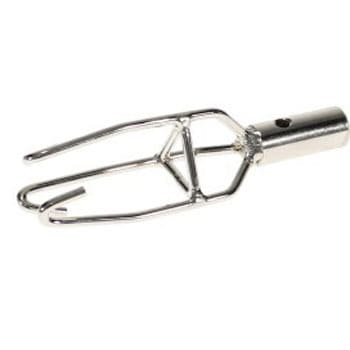 地中管内通線用の先端誘導具に引っ掛け、引っ張り出すための金具。ファイバーレッドライン、シルバーグラスラインの先端に取り付けて使用。先端誘導金具の反対側から挿入し、地中線管内の途中で先端誘導金具を引っ掛けて、引っ張り出すための金具。別売りのRG・GL用アダプター金具を使用してファイバーレッドライン、シルバーグラスラインに対応。