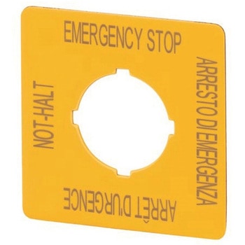 Eaton 緊急停止ラベルは、寸法が 50 x 50 mm で、黄色が用意されています。動作温度範囲: -25 → 70 ℃ IP66保護クラス