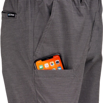 ご好評のサマーソルジャーシリーズに新たに体にフィットして伸び縮みするストレッチ機能が加わりました。吸水速乾素材使用で暑い季節の作業を快適にサポートします。脇、後ろポケット袋布は通気性の良いメッシュを採用。衣服内の熱やムレを逃がして快適です。股下に汗のにおいを軽減する消臭テープが縫い込まれています。ウエストには両サイドにゴムが入っており適度に伸び縮みします。右脇にフラップ付きポケット、左脇にファスナー付きカーゴポケットを装備。