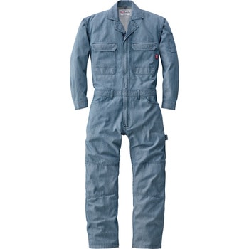 用途自動車・バイク整備、鉄工・金属・機械製造、運送・倉庫・工場・農業仕様デニム調ストレッチ素材、ビッグカーゴポケット(ファスナー付)胸部3ポケット(ボタン付き)、背中部分反射パイピング使用、裾調節タブつき。インディゴ混率(%)ポリエステル70%、綿25%