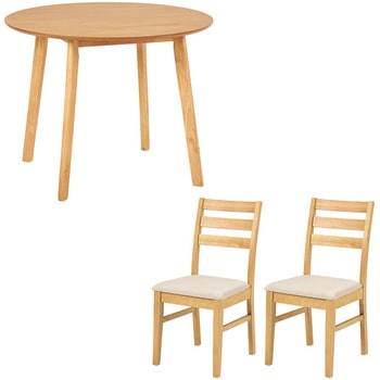 ダイニングセット 円形 丸 直径90 3点セット 2人用 角テーブル カフェ風 シンプル 天然木萩原