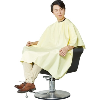 ヘアカラー液がついても安心。乾いた後でも汚れを拭き取れます。肘までカバーできるワイドサイズでお客様の衣服をカバーできます。