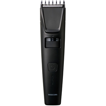 用途すくった髪を逃がさず、狙った長さにカットできる新設計のショートコーム。 手元のダイヤルを回すだけで1mmずつ調節が可能。少しずつ短くカットできるので初心者でも安心です。握りやすさを考慮したボディ形状なので、強く握りこむ事なく使えます。 45°鋭角刃を使用することで、スムーズなカットが可能に。 耳まわり等の生え際もスキバサミのような自然な仕上がりに。ボリュームダウンもカンタンにできます。 お掃除レバーを立てることで、固定刃と可動刃の間もカンタンに掃除できます。 充電し忘れても短時間充電で待つ時間が50%※1短縮!コードレスだからお風呂タイム※2にお子様の髪もパパっとカットでき、切りたいその日にすっきり。※1 TC460 との比較※2 お風呂場など水気のある場所では、電源アダプターのご使用はおやめください。 抗菌剤配合で清潔に使えます。 AC100-240Vの地域で使用できます。 A2プラグ地域以外でご使用の際は、変換プラグをご用意ください。 丸刈りからショートスタイルまで使用可能です。仕様【水洗い】本体/刃水洗いOK付属品ショートコーム / スキ刈りコーム / 電源アダプター / 掃除用ブラシ / TESCOMオイル色ブラック質量(g)170(本体のみ)電源AC100-240V 50/60Hz(充電・交流式)コード長さ(m)1.8寸法(幅W×奥行D×高さH)(mm)48×43×185(本体のみ)保証期間1年間使用地区【海外使用】○充電時間(時間)約4