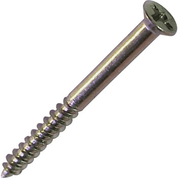 侵食性に優れ、防錆力に優れたオーステナイト系ステンレスXM7製です。頭部下のフレキ加工で木材を切削し、頭浮きを防ぎます。ねじ山の間隔が長く(粗目)ねじの溝が深い、電動工具を使って作業するもっとも一般的な木工用ビスです。