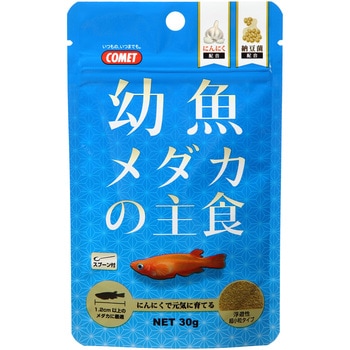 1.2cm以上のメダカ向け育成フード。メダカが食べやすい浮遊性、超小粒タイプ。にんにく配合で嗜好性アップ、抗菌・殺菌効果により強く元気なメダカを育成し、3つの善玉菌(納豆菌・乳酸菌・酵母菌)配合により腸内で善玉菌を活性化させ腸内細菌のバランスを整えます。水槽の汚れ、ニオイを軽減します。