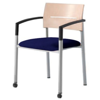 アルフォルム3 4本脚 ウッド肘付 背合板 シルバーフレーム ナチュラルビーチシェル 前脚キャスター付オカムラ(岡村製作所)