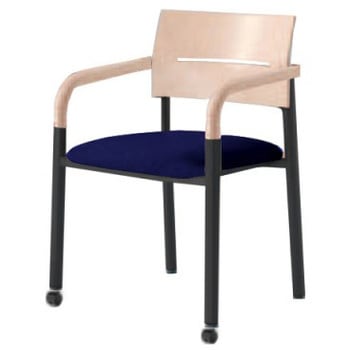 アルフォルム3 4本脚 ウッド肘付 背合板 ブラックフレーム ナチュラルビーチシェル 前脚キャスター付オカムラ(岡村製作所)