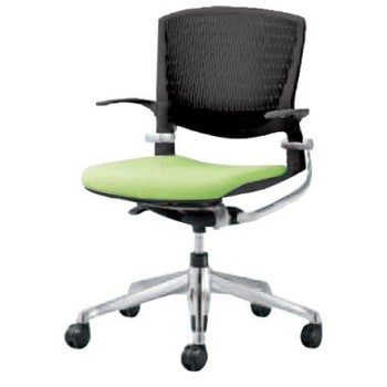 グラータ 5本脚チェア 肘付 背パッド付 ブラックシェル ポリッシュフレーム ナイロン双輪オカムラ(岡村製作所)