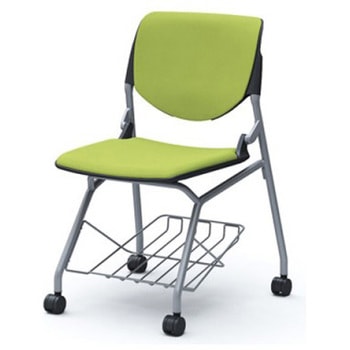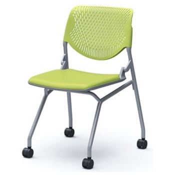 ルナ ネスティング 肘無 テーブル付 背パッド無 グリーンシェル シルバーフレーム ナイロン双輪オカムラ(岡村製作所)