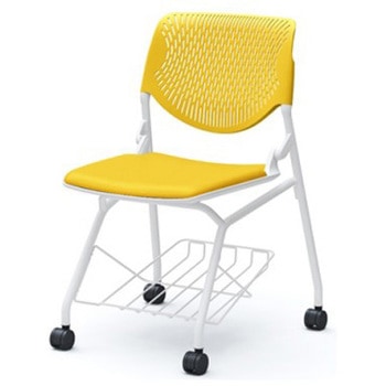 ルナ ネスティング 肘無 背パッド無 イエローシェル ホワイトフレーム ナイロン双輪オカムラ(岡村製作所)