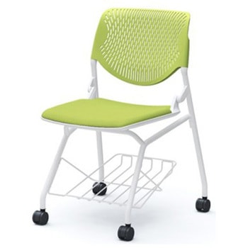 ルナ ネスティング 肘無 棚付テーブル付 背パッド無 グリーンシェル ホワイトフレーム ナイロン双輪オカムラ(岡村製作所)