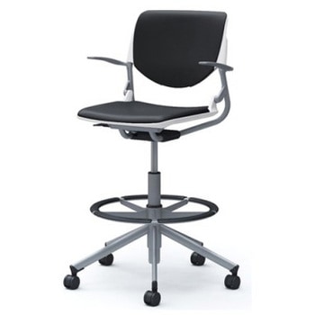 ルナ 5本脚ハイチェア 肘付 背パッド付 ホワイトシェル シルバーフレーム ナイロン双輪オカムラ(岡村製作所)