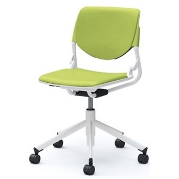 ルナ 5本脚チェア 肘無 背パッド付 グリーンシェル ホワイトフレーム ナイロン双輪オカムラ(岡村製作所)