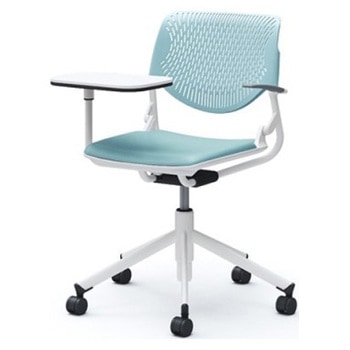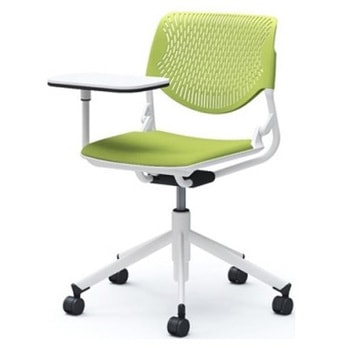 ルナ 5本脚チェア 肘無 タブレット付 背パッド無 グリーンシェル ホワイトフレーム ナイロン双輪オカムラ(岡村製作所)