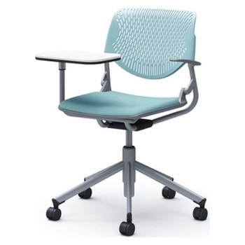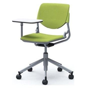 ルナ 5本脚チェア 肘無 タブレット付 背パッド付 グリーンシェル シルバーフレーム ナイロン双輪オカムラ(岡村製作所)
