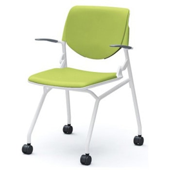 ルナ ネスティング 肘付 背パッド付 グリーンシェル ホワイトフレーム ナイロン双輪オカムラ(岡村製作所)