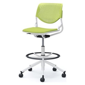 ルナ 5本脚ハイチェア 肘無 背パッド無 グリーンシェル ホワイトフレーム ナイロン双輪オカムラ(岡村製作所)