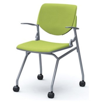 ルナ ネスティング 肘無 テーブル付 背パッド付 グリーンシェル シルバーフレーム ナイロン双輪オカムラ(岡村製作所)