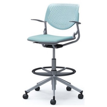 ルナ 5本脚ハイチェア 肘付 背パッド付 セージシェル シルバーフレーム ナイロン双輪オカムラ(岡村製作所)