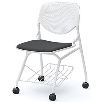 ルナ ネスティング 肘無 棚付テーブル付 背パッド付 ホワイトシェル ホワイトフレーム ナイロン双輪オカムラ(岡村製作所)