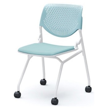 ルナ ネスティング 肘無 テーブル付 背パッド無 セージシェル ホワイトフレーム ナイロン双輪オカムラ(岡村製作所)
