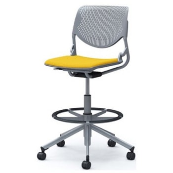 ルナ 5本脚ハイチェア 肘付 背パッド無 イエローシェル ホワイトフレーム ナイロン双輪オカムラ(岡村製作所)