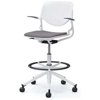 ルナ 5本脚ハイチェア 肘付 背パッド付 ホワイトシェル ホワイトフレーム ナイロン双輪オカムラ(岡村製作所)