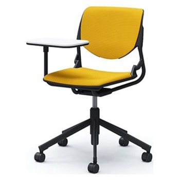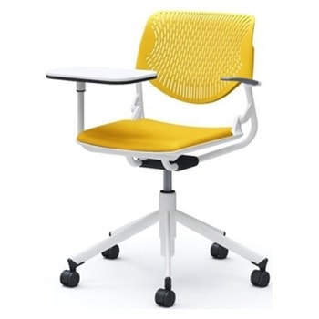 ルナ 5本脚チェア 肘付 タブレット付 背パッド無 イエローシェル ホワイトフレーム ナイロン双輪オカムラ(岡村製作所)