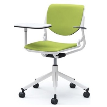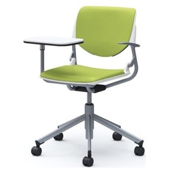 ルナ 5本脚チェア 肘無 タブレット付 背パッド無 セージシェル ホワイトフレーム ナイロン双輪オカムラ(岡村製作所)