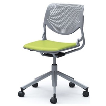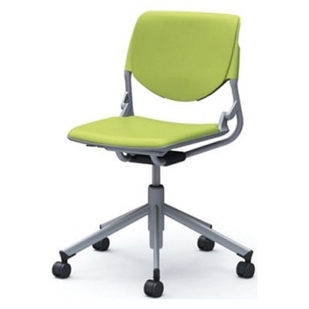 ルナ 5本脚チェア 肘無 背パッド付 グリーンシェル シルバーフレーム ナイロン双輪オカムラ(岡村製作所)
