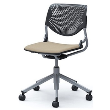 ルナ 5本脚チェア 肘無 背パッド付 ブラックシェル ブラックフレーム ナイロン双輪オカムラ(岡村製作所)