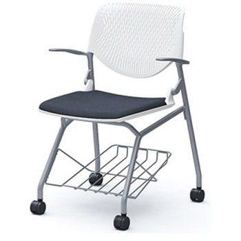 ルナ ネスティング 肘付 棚付 背パッド付 ホワイトシェル シルバーフレーム ナイロン双輪オカムラ(岡村製作所)