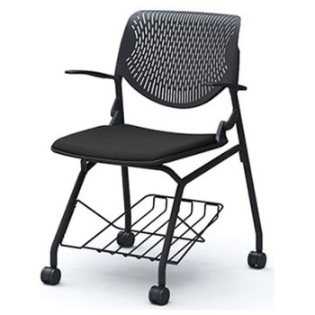 ルナ ネスティング 肘付 棚付 背パッド付 ブラックシェル シルバーフレーム ナイロン双輪オカムラ(岡村製作所)
