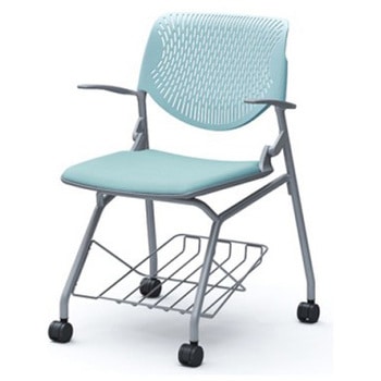 ルナ ネスティング 肘無 背パッド付 セージシェル シルバーフレーム ナイロン双輪オカムラ(岡村製作所)