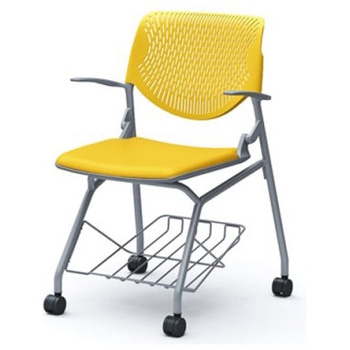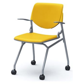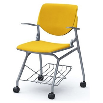ルナ ネスティング 肘付 棚付 背パッド無 イエローシェル シルバーフレーム ナイロン双輪オカムラ(岡村製作所)