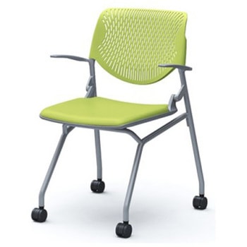 ルナ ネスティング 肘付 背パッド無 グリーンシェル シルバーフレーム ナイロン双輪オカムラ(岡村製作所)