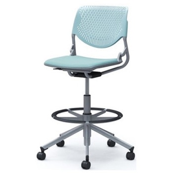 ルナ 5本脚ハイチェア 肘無 背パッド無 セージシェル シルバーフレーム ナイロン双輪オカムラ(岡村製作所)