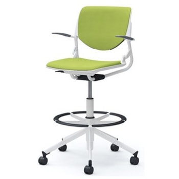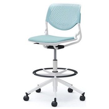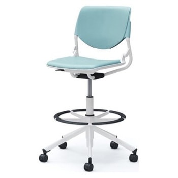 ルナ 5本脚ハイチェア 肘無 背パッド付 セージシェル ホワイトフレーム ナイロン双輪オカムラ(岡村製作所)