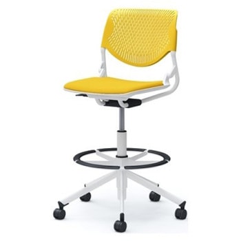 ルナ 5本脚ハイチェア 肘無 背パッド無 イエローシェル ホワイトフレーム ナイロン双輪オカムラ(岡村製作所)