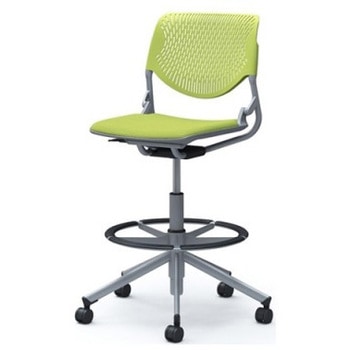 ルナ 5本脚ハイチェア 肘無 背パッド無 グリーンシェル シルバーフレーム ナイロン双輪オカムラ(岡村製作所)