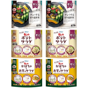 [冷凍]チン!するレストランから開発された 温野菜・ポテトサラダ・かぼちゃとお芋のサラダ 3種×各2個Delcy