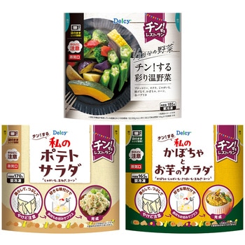 [冷凍]チン!するレストランから開発された 温野菜・ポテトサラダ・かぼちゃとお芋のサラダ 3種×各1個Delcy
