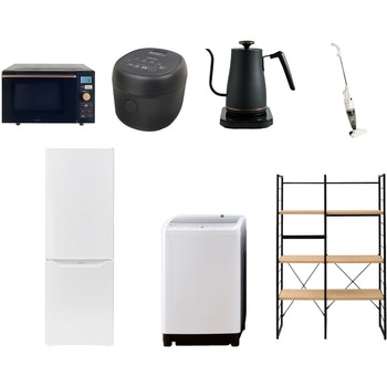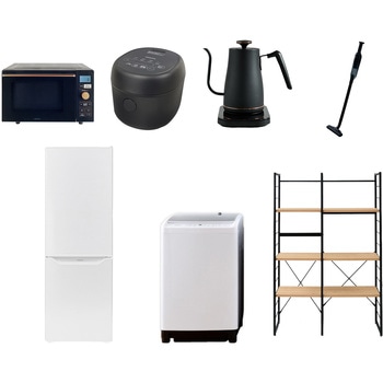 家電セット 寮 オフィス 事務所 新生活家電 7点セット (6kg洗濯機 106L冷蔵庫 電子レンジ 炊飯器 電気ケトル スティッククリーナー 家電収納ラック)YAMAZEN(山善)