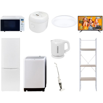 家電セット 寮 オフィス 事務所 新生活家電 8点セット (8kg洗濯機 173L冷蔵庫 オーブンレンジ 炊飯器 シーリングライト 43型液晶テレビ 温調ケトル 家電収納ラック)YAMAZEN(山善)