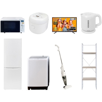 家電セット 寮 オフィス 事務所 新生活家電 8点セット (8kg洗濯機 173L冷蔵庫 電子レンジ シーリングライト 32型液晶テレビ 電気ケトル 軽量クリーナー 家電収納ラック)YAMAZEN(山善)