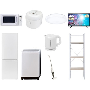 家電セット 寮 オフィス 事務所 新生活家電 9点セット (8kg洗濯機 173L冷蔵庫 電子レンジ 炊飯器 シーリングライト 32型液晶テレビ 電気ケトル スティッククリーナー 家電収納ラック)YAMAZEN(山善)